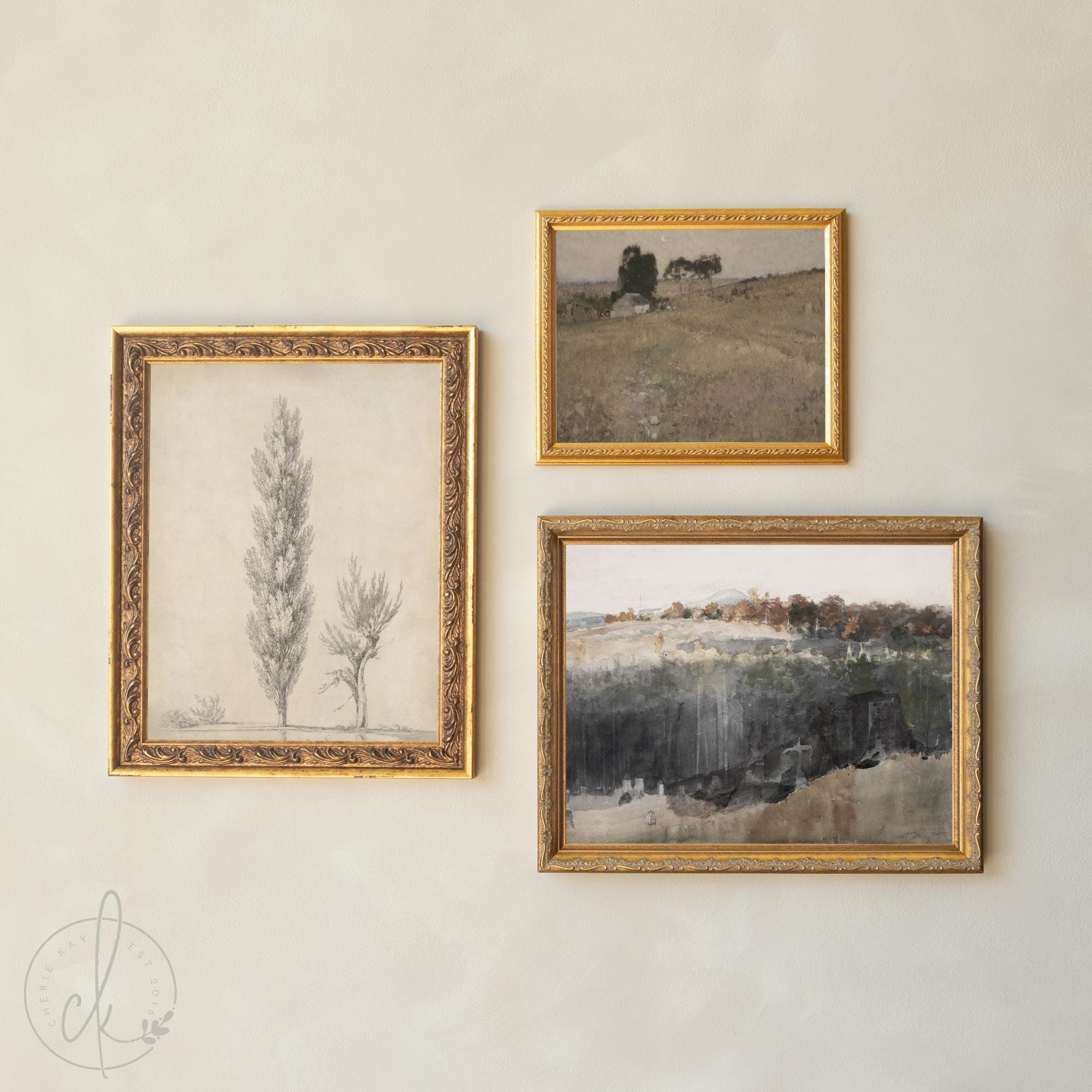 This antique style wall art set includes five framed prints featuring flowers, landscapes, and a botanical sketch. Each piece has gold or dark classic frames and warm neutral tones. It’s made for cozy living rooms, entryways, or reading spaces where you want elegant, timeless design that fits with traditional home decor.