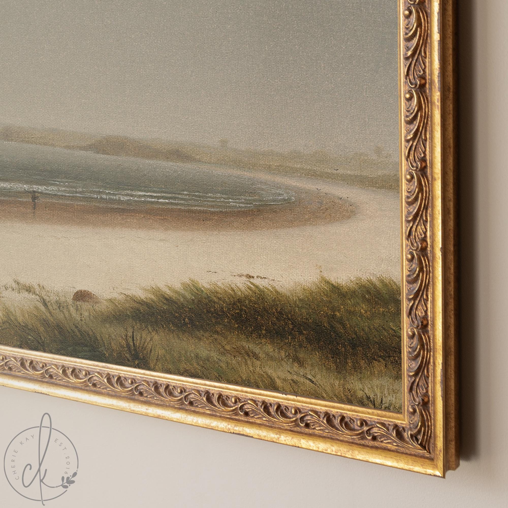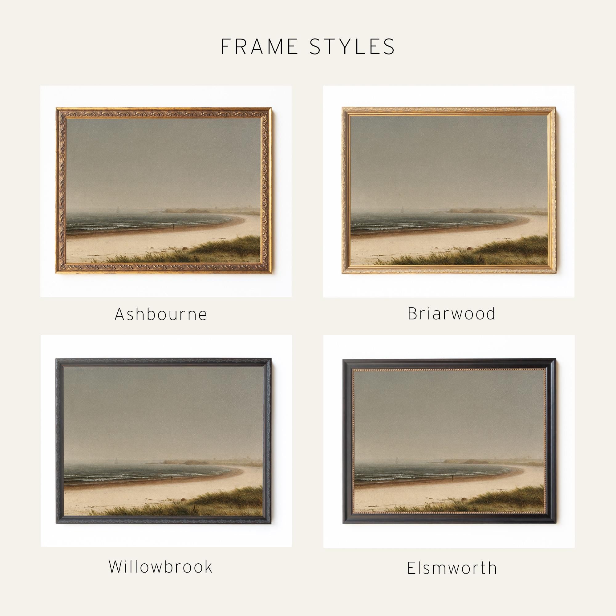 This framed beach landscape wall art shows a calm shoreline with waves and grass-covered dunes. Its muted tones and vintage finish make it an easy fit for living rooms, bedrooms, or coastal homes. The ocean view adds a natural, peaceful feel, perfect for creating a relaxed space. Pairs well with neutral interiors or nautical accents. Each piece comes ready to hang and works beautifully above a console, sofa, or bed.