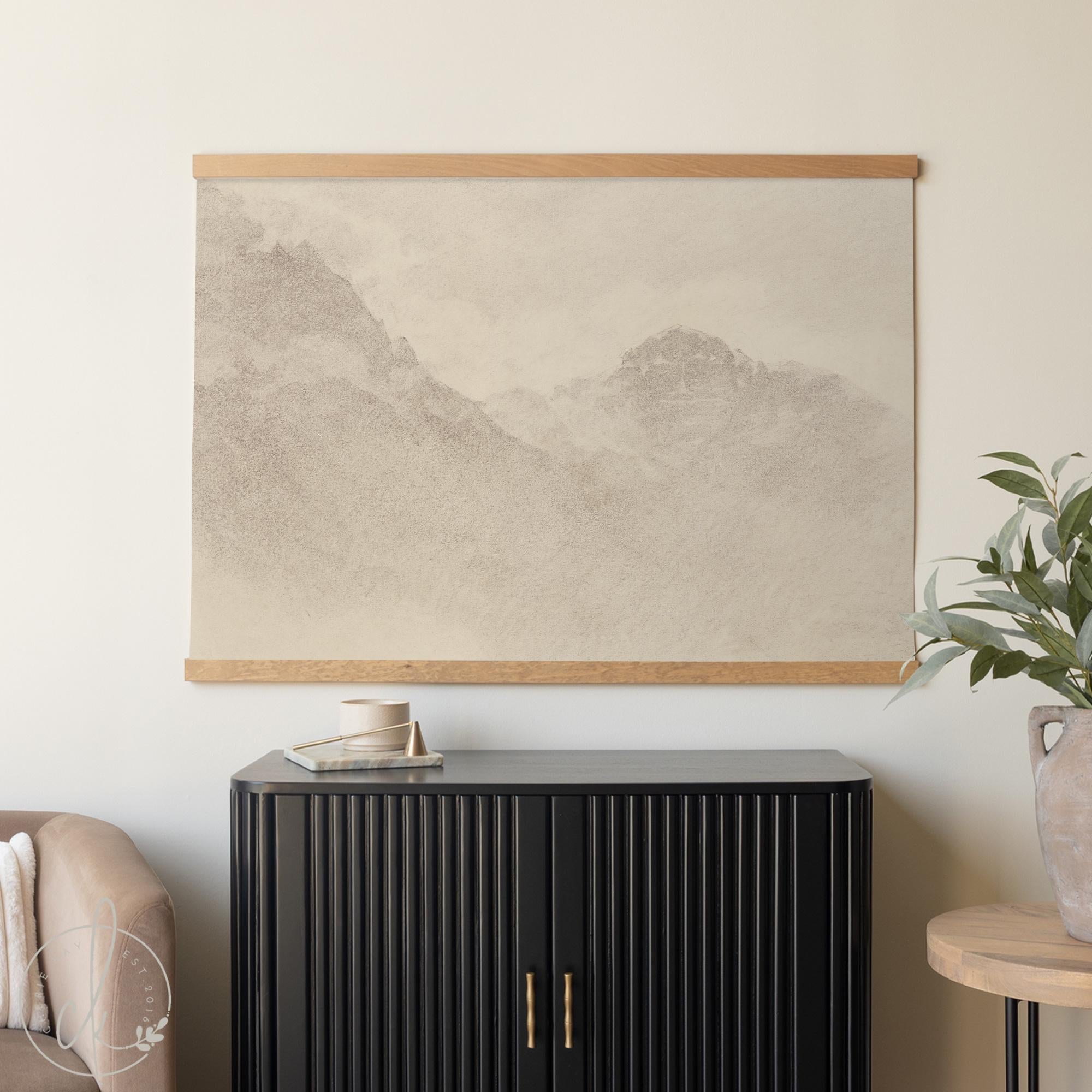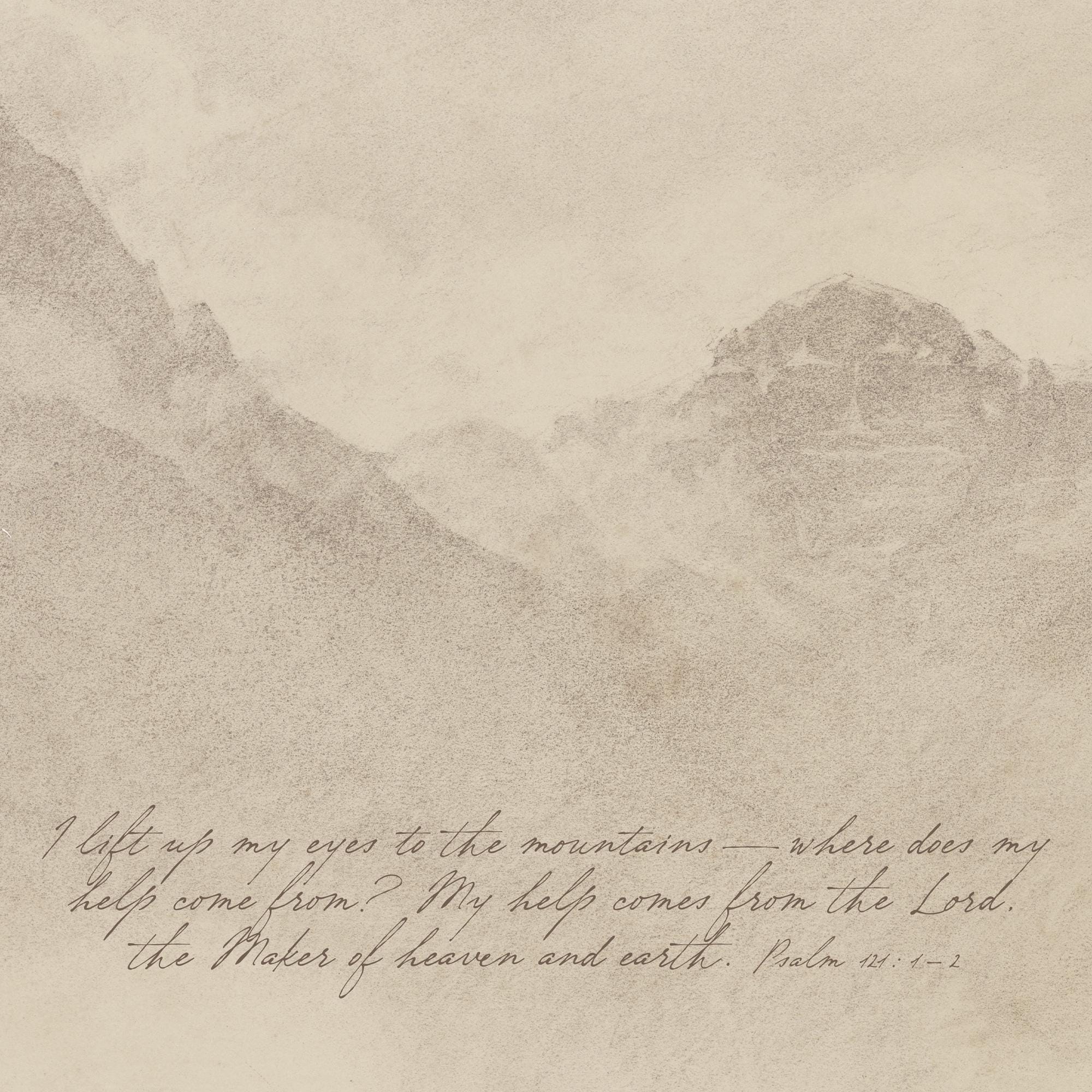 This Christian canvas wall art features a misty mountain landscape with Psalm 121:1-2. "I lift up my eyes to the mountains — where does my help come from? My help comes from the Lord, the Maker of heaven and earth." The muted taupe and gray tones give it a vintage feel that works well above a couch, bed, or entryway — especially if you love neutral wall art with meaning behind it. Printed on canvas with a natural wood hanging rod, it's ready to hang right out of the box.