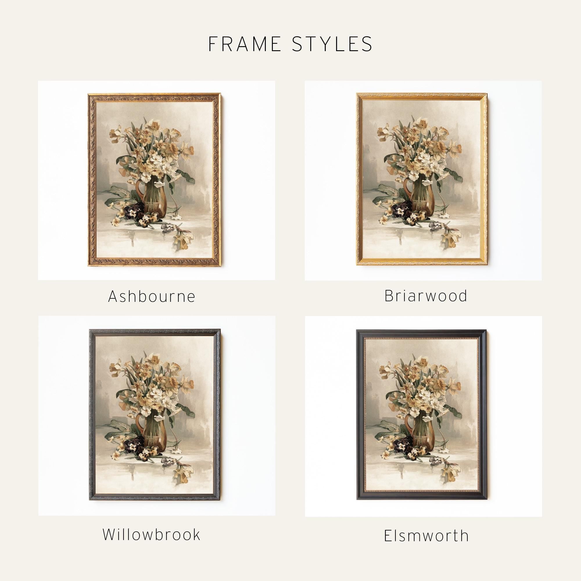 This daffodil painting features a detailed still life of soft yellow blooms arranged in a vase with a gold frame. The subtle tones and vintage floral design make it ideal for living room wall art, entryway wall art, or refined home decor wall art that adds warmth and depth to any space.