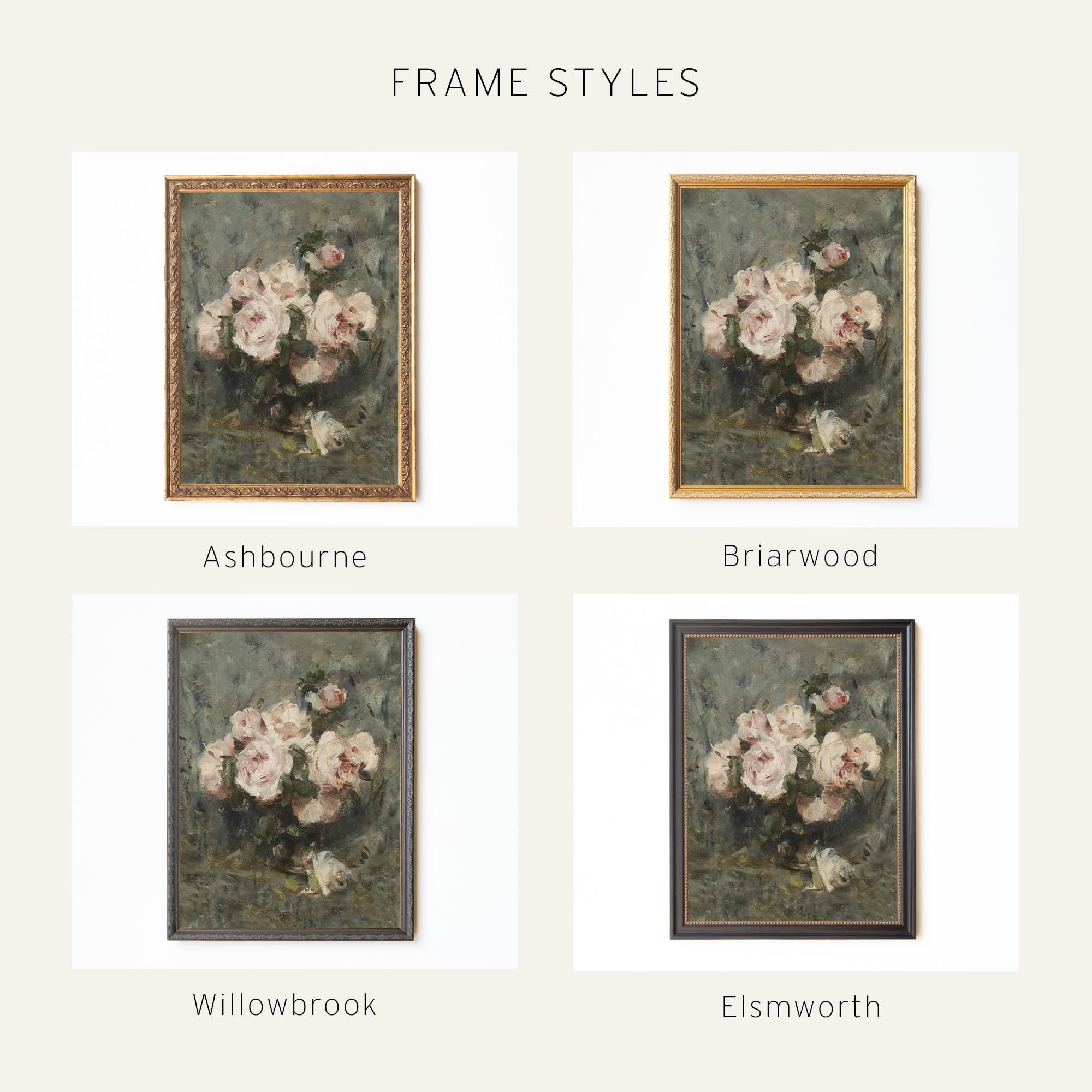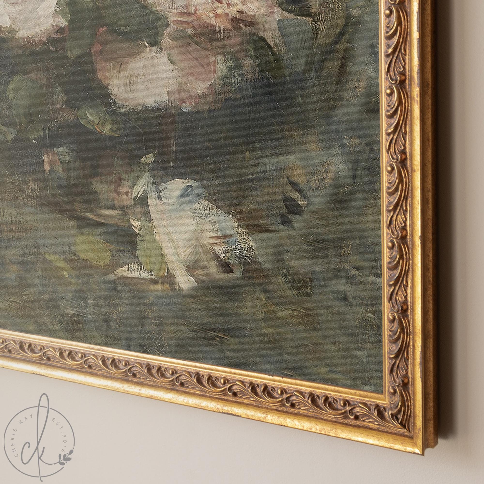 This impressionist floral painting features a delicate bouquet of pink roses and is presented in an ornate gold frame. The framed rose bouquet canvas adds warmth to any interior, pairing beautifully with living room wall art, bedroom wall decor, or entryway displays. With its gentle brushwork and neutral tones, this floral oil painting blends seamlessly into classic and modern spaces alike.
