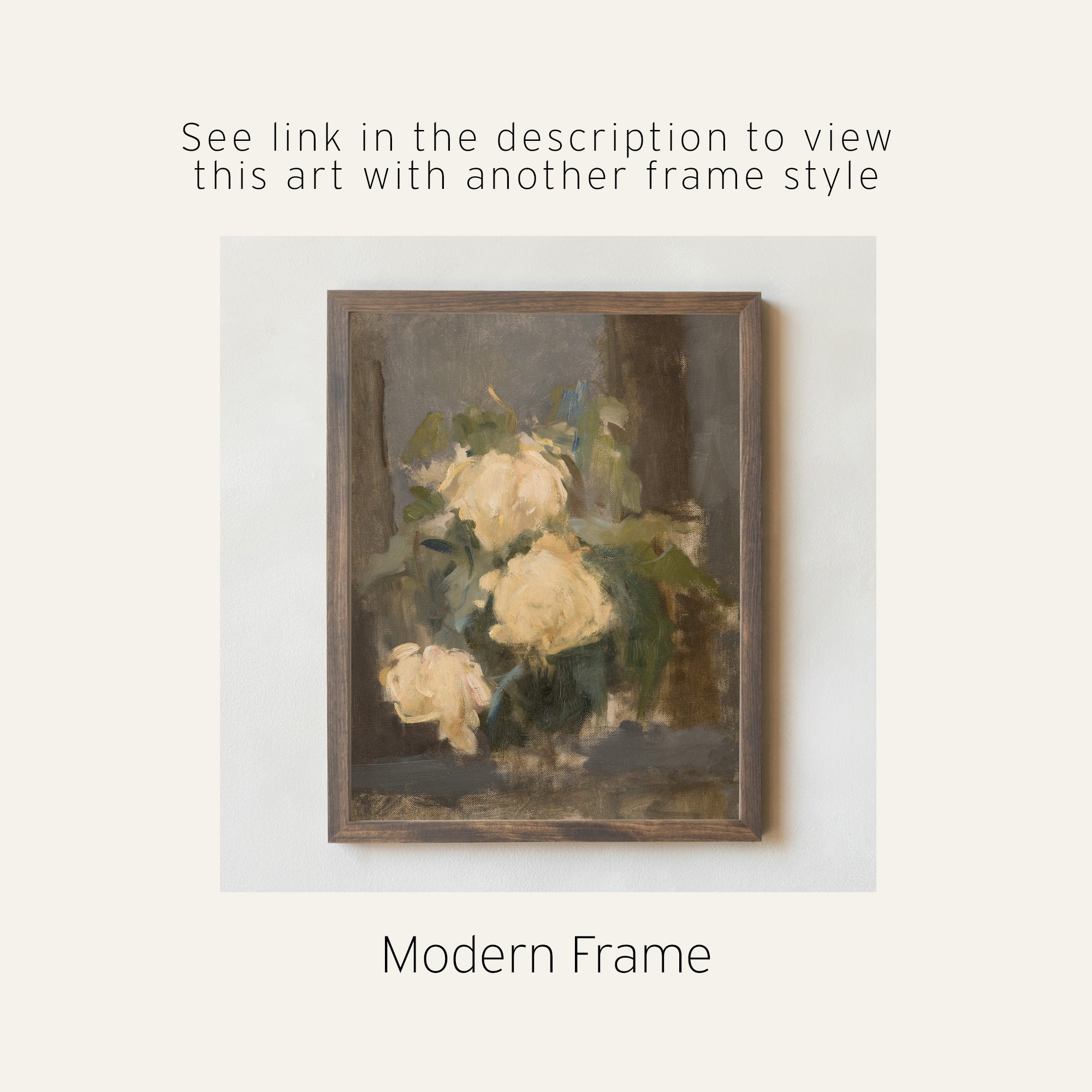 This impressionist floral art shows soft brushstrokes and warm neutral colors with roses in a gold frame. It’s a classic oil painting that adds gentle texture and style to any living room, bedroom, or entryway. The framed design makes it ready to display and easy to match with many home styles.