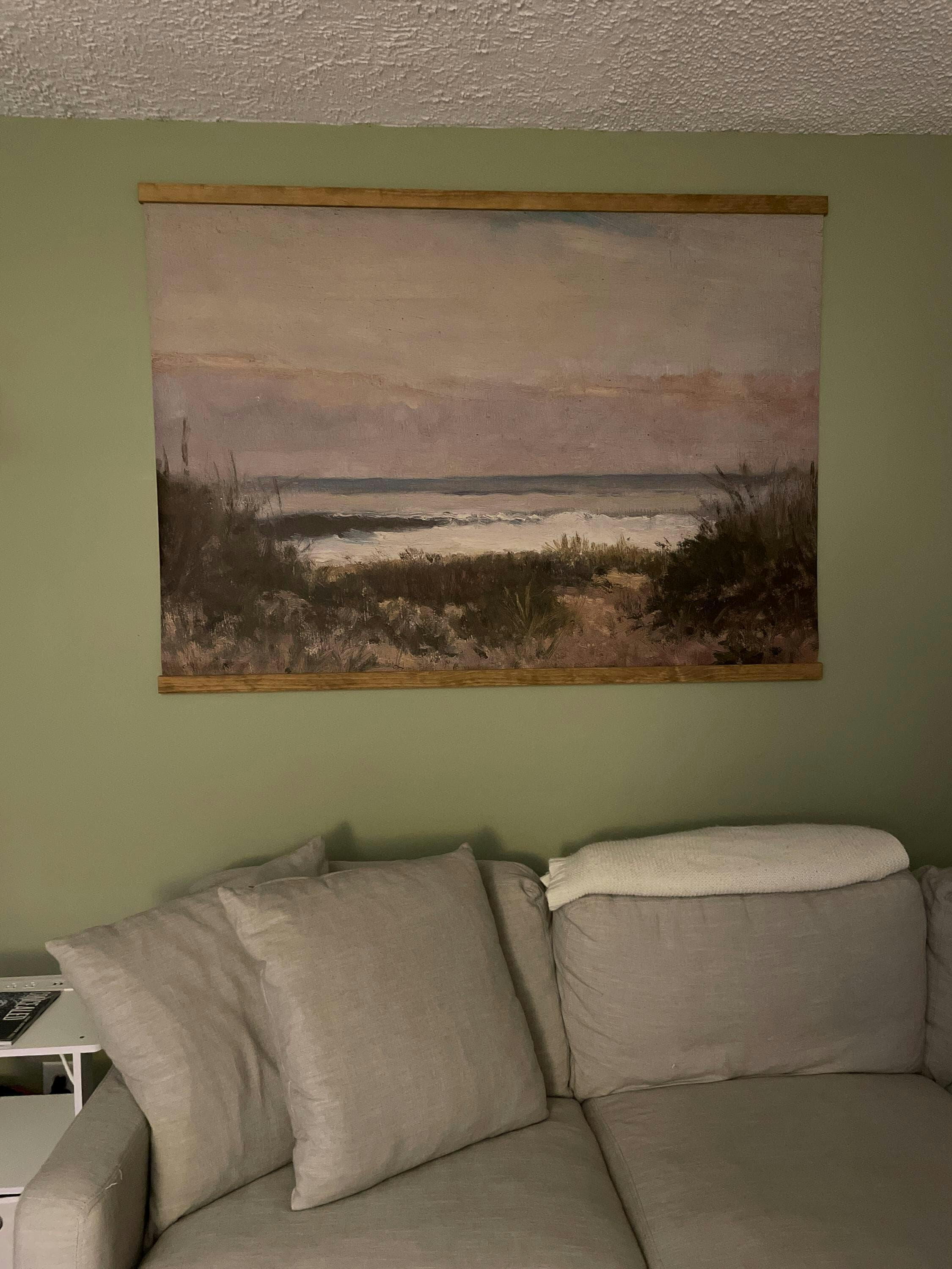 Bring calming coastal vibes to your home with this large beach painting landscape tapestry, featuring a vintage-style painting of ocean waves and dunes. Perfect for neutral interiors or coastal decor, it adds warmth and serenity to any space. Ideal for living rooms, bedrooms, or beach houses, this oversized wall hanging makes a beautiful statement piece or thoughtful gift for ocean lovers.