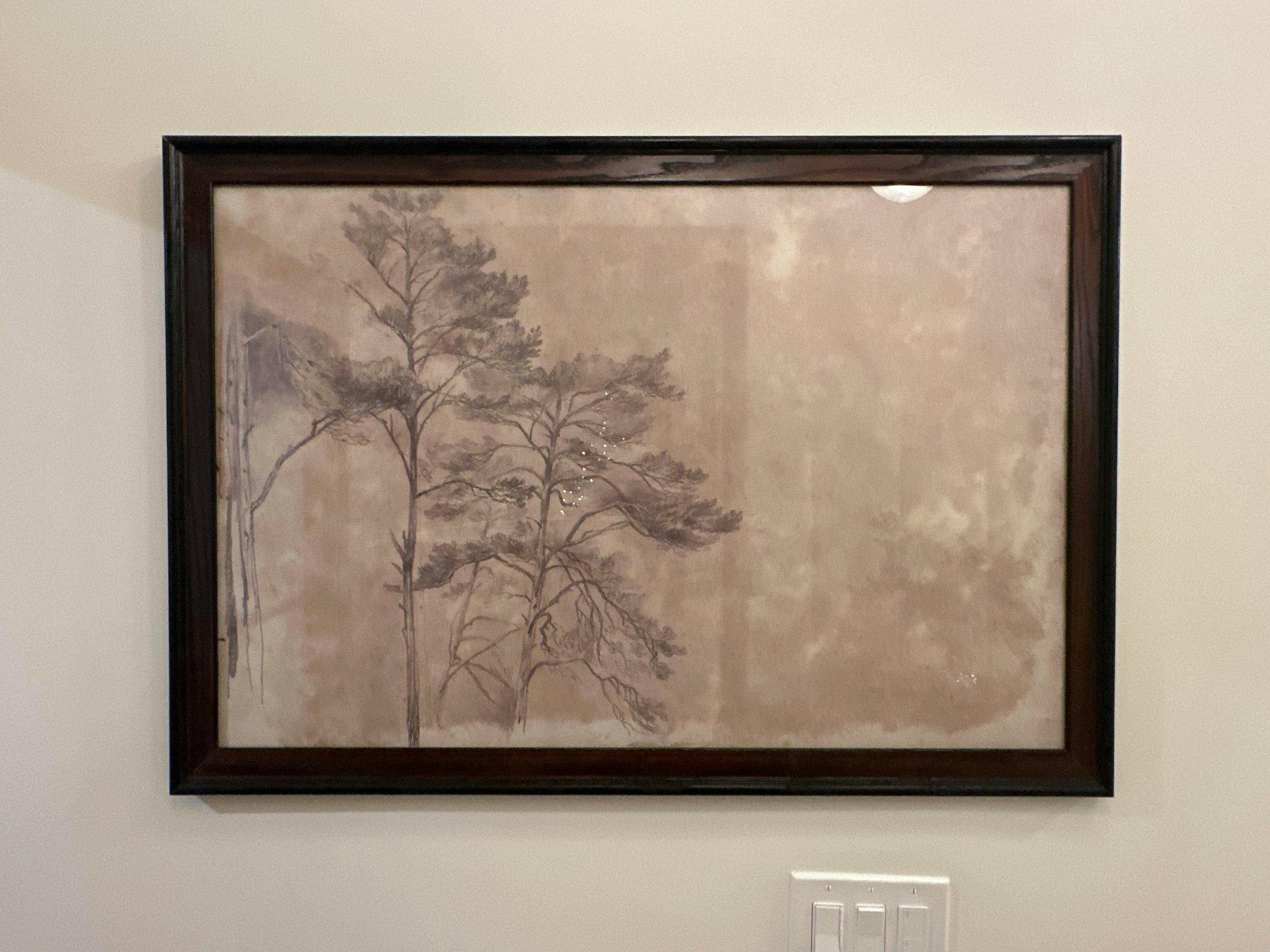 Add timeless character to your home with this Large Tree Painting, a vintage landscape drawing printed on canvas and set in an ornate gold frame.