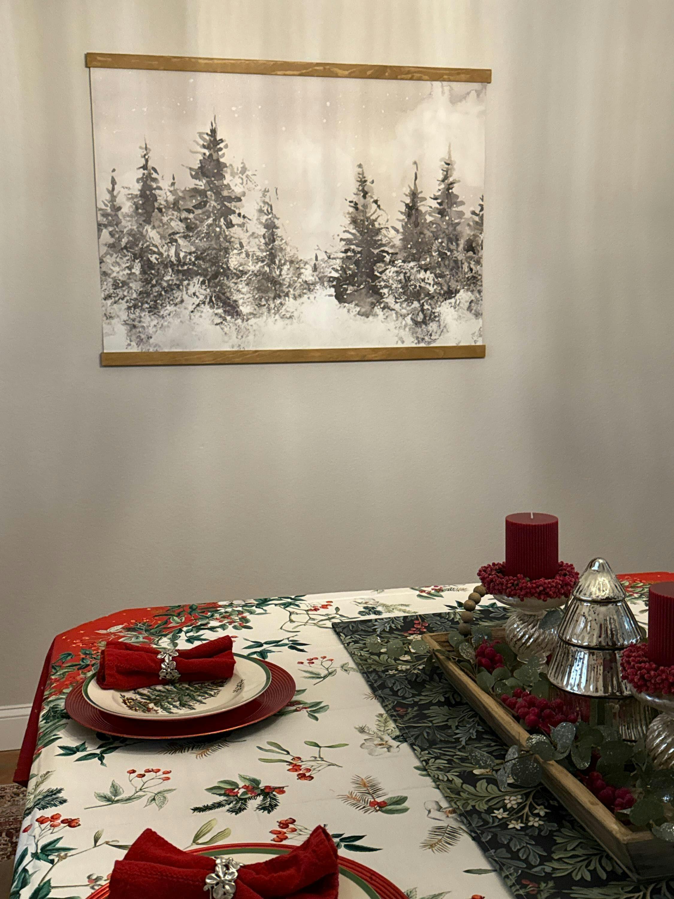 This large winter wall art brings a festive touch as Christmas canvas wall art, featuring a snowy pine forest that blends beautifully with holiday decor. Displayed as Christmas tree wall art above the mantel or as a seasonal wall hanging in the entryway, this oversized canvas creates a warm, inviting atmosphere for winter home decor.