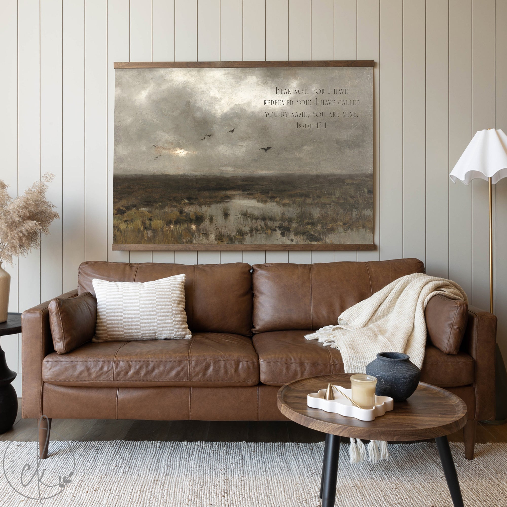 Add warmth and inspiration to your space with this rustic vintage landscape wall art featuring a serene field scene and the uplifting Bible verse Isaiah 43:1 "Fear not, for I have redeemed you; I have called you by name, you are mine." Framed in rustic wood and designed in calming neutral tones, this timeless piece complements farmhouse, rustic, and modern decor. Perfect for living rooms, bedrooms, or as a meaningful gift for any occasion.