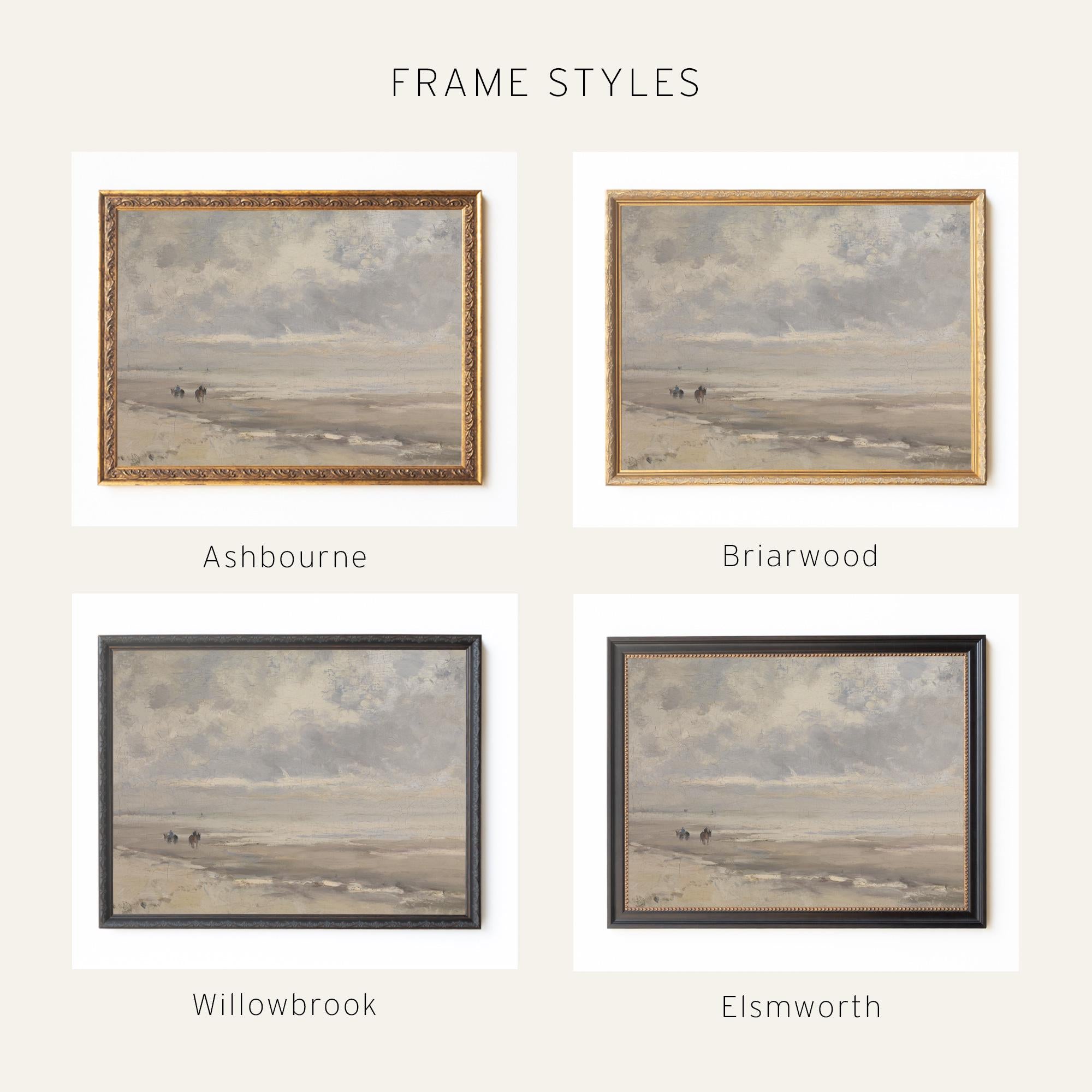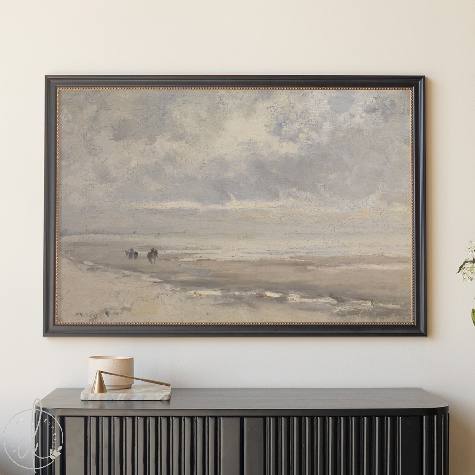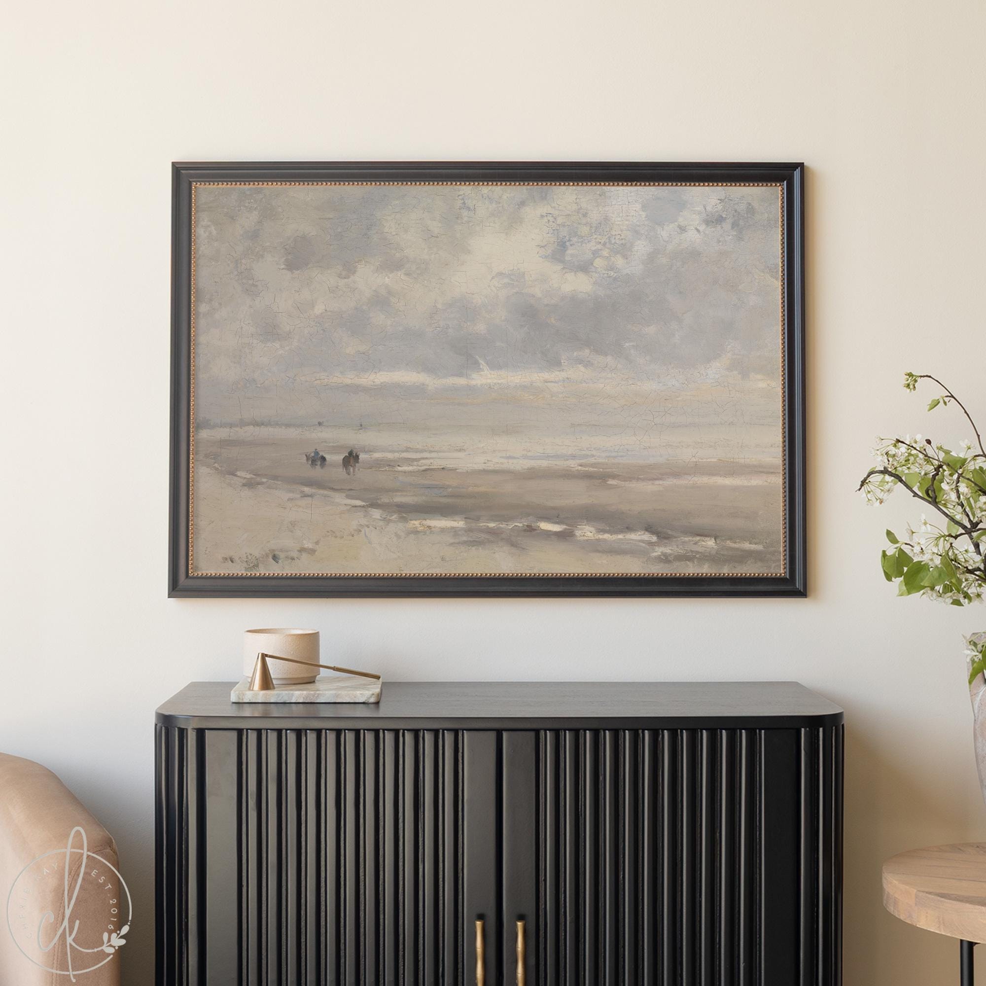 This vintage coastal art shows a calm beach scene with soft sand, cloudy skies, and gentle ocean colors. The framed wall piece has warm neutral tones that fit easily with any style of home decor. It looks beautiful as living room wall art, in a cozy bedroom, or as entryway wall decor to welcome guests. Perfect for anyone who loves coastal home decor, this artwork brings the peaceful feel of the shore indoors.