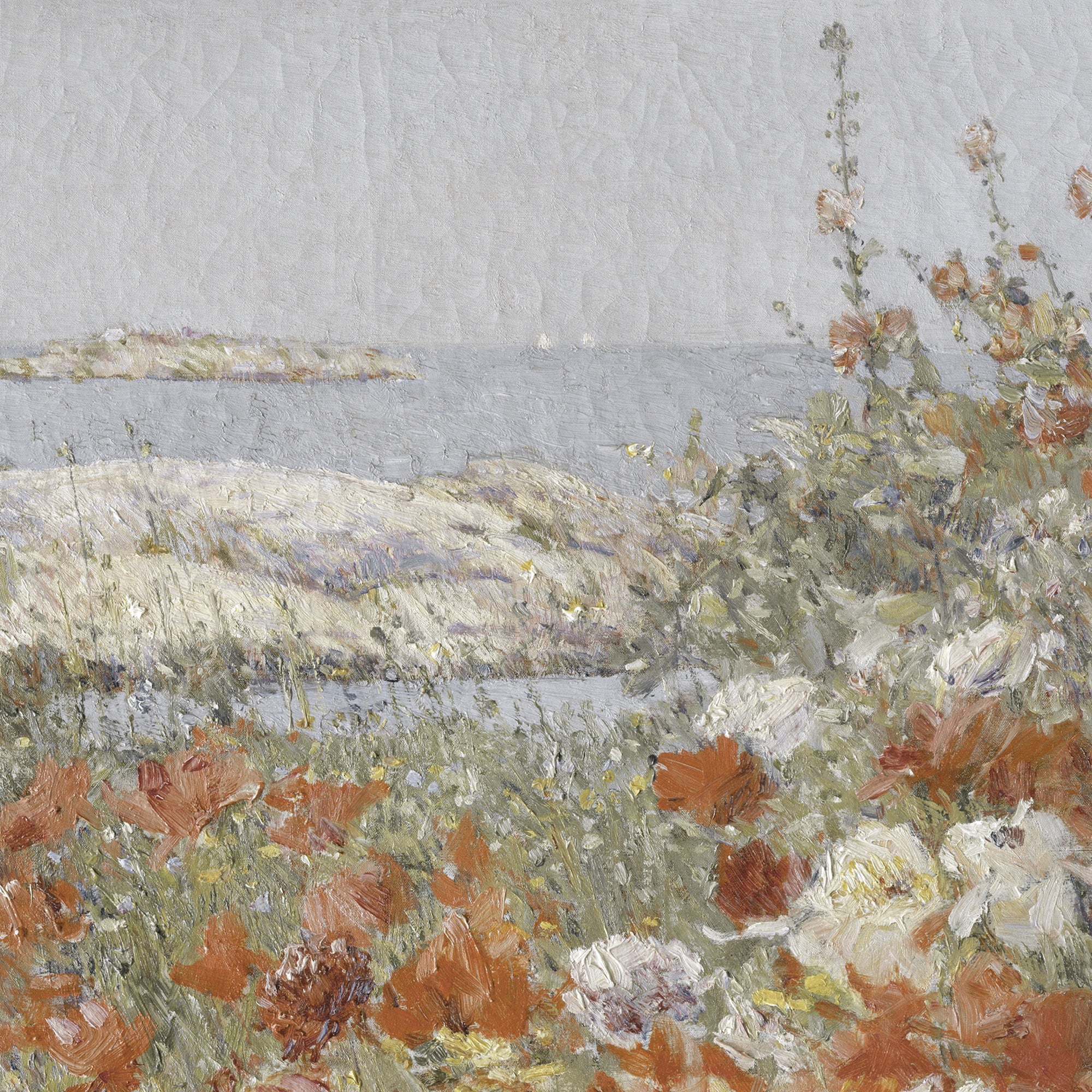 Bring art history to your home with this vintage landscape painting reproduction inspired by Celia Thaxter’s Garden, Isles of Shoals, Maine by American Impressionist artist Childe Hassam.