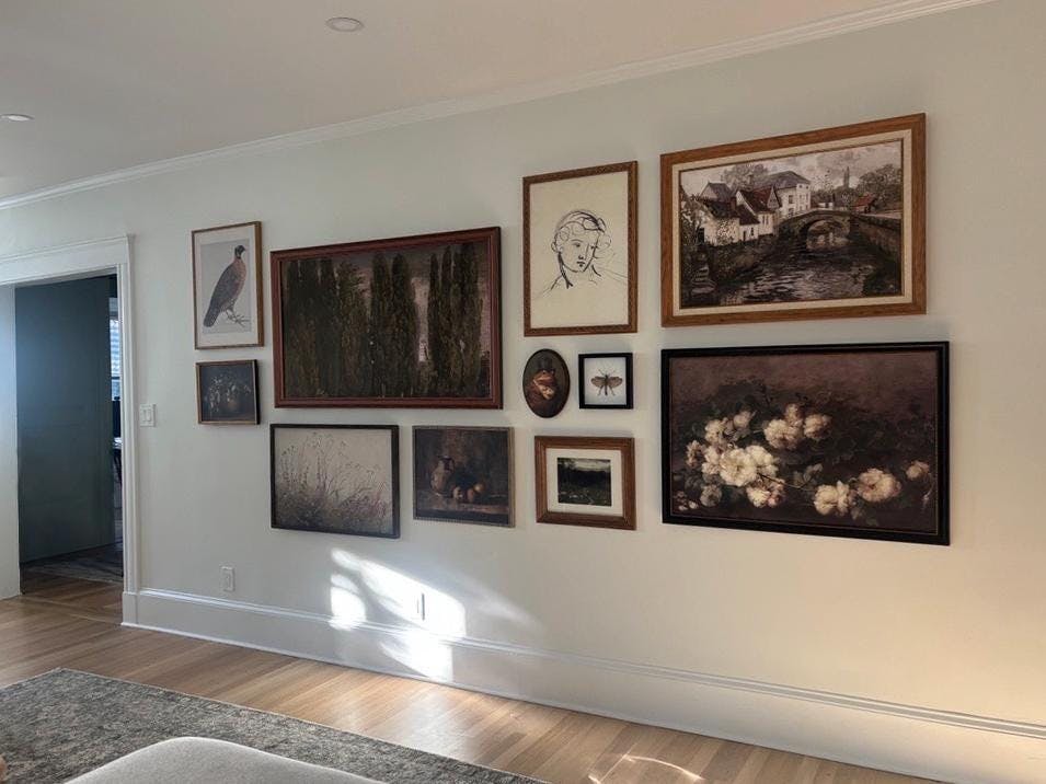 So excited to hang this picture. Beautiful, was looking for something just a 'tad' moody for our all white bathroom w/ black / white floored tiles. Perfectly warms up the room with other wood furnishings.