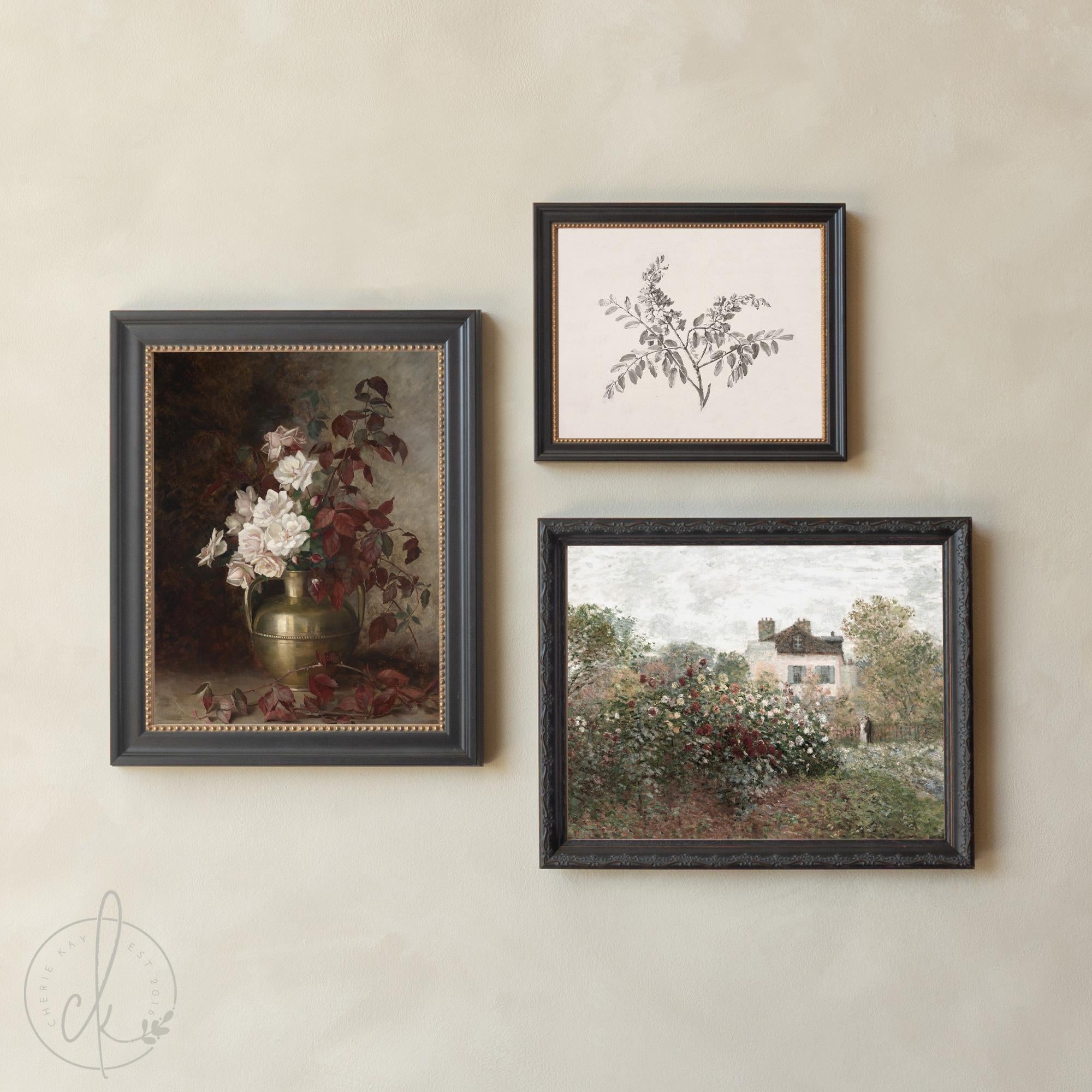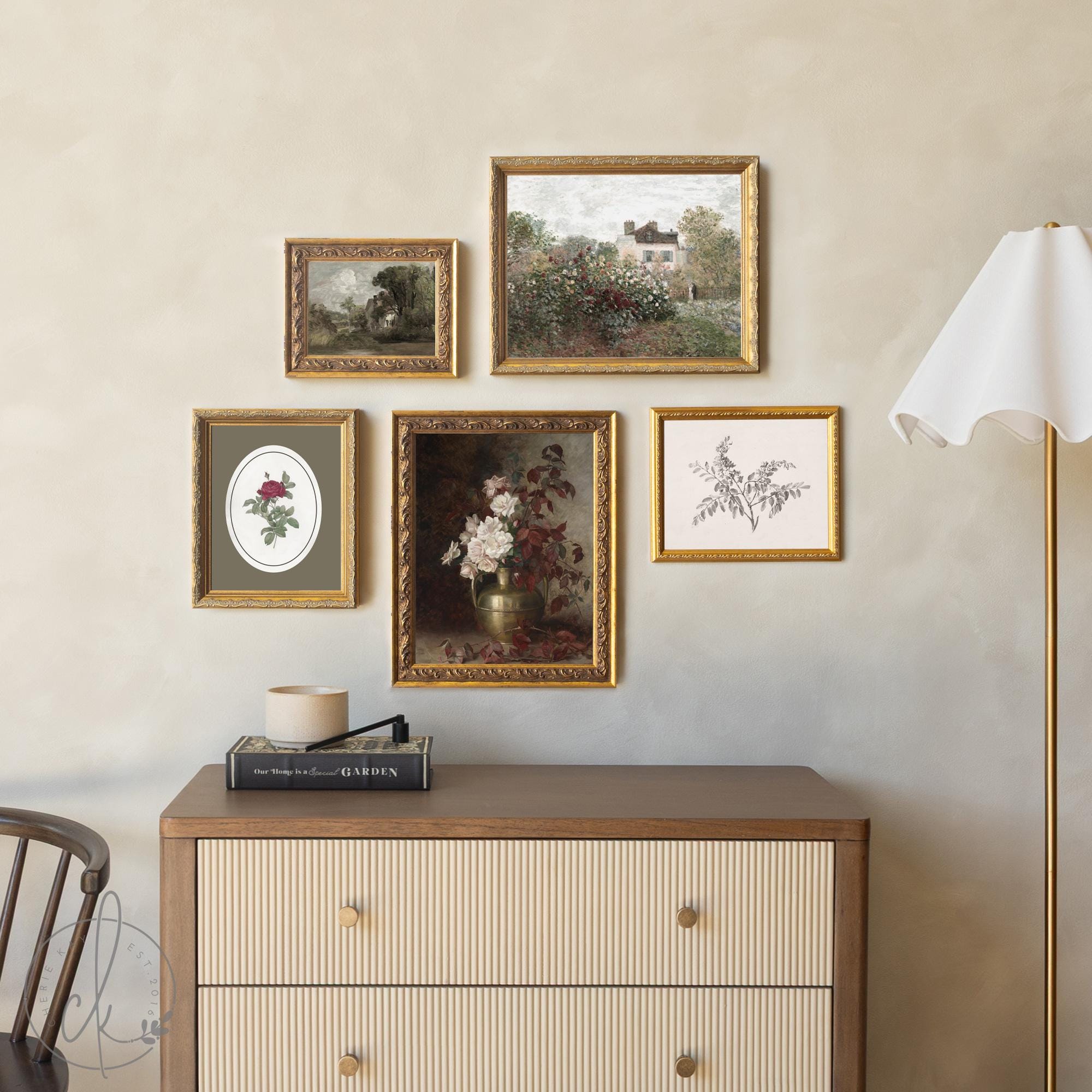 This vintage floral wall art collection features a curated mix of framed flower wall art, botanical wall art, and vintage flower prints. Each piece features soft colors, floral designs, and a delicate aesthetic that complements a living room, bedroom, or hallway beautifully. Together, they create a beautiful vintage gallery wall with an antique-style wall art feel that adds character to any space.