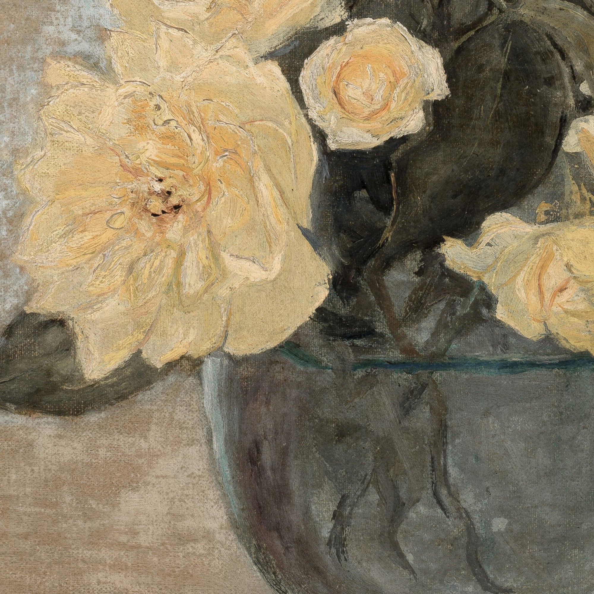 This vintage flower painting showcases a detailed still life bouquet of soft yellow roses in a vase. The framed antique rose art brings an authentic old world look that fits beautifully in a living room, bedroom, or entryway. With gentle tones and canvas texture, it adds warmth and character to any wall without overpowering your space.