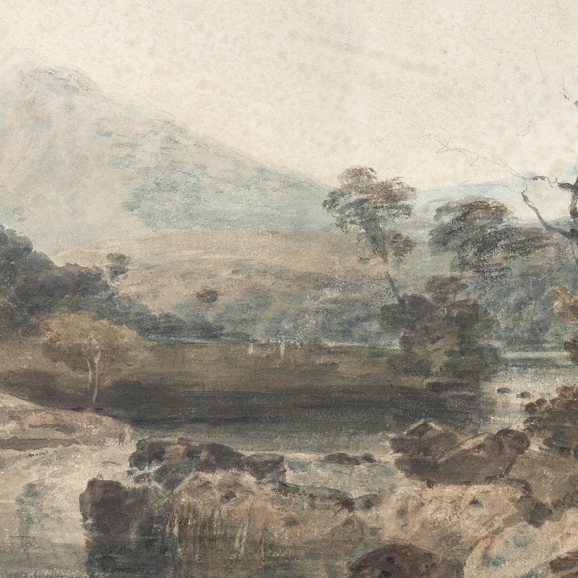 This vintage framed wall art features a serene mountain scene in soft, neutral tones—perfect for adding style to your living room, entryway, or office.