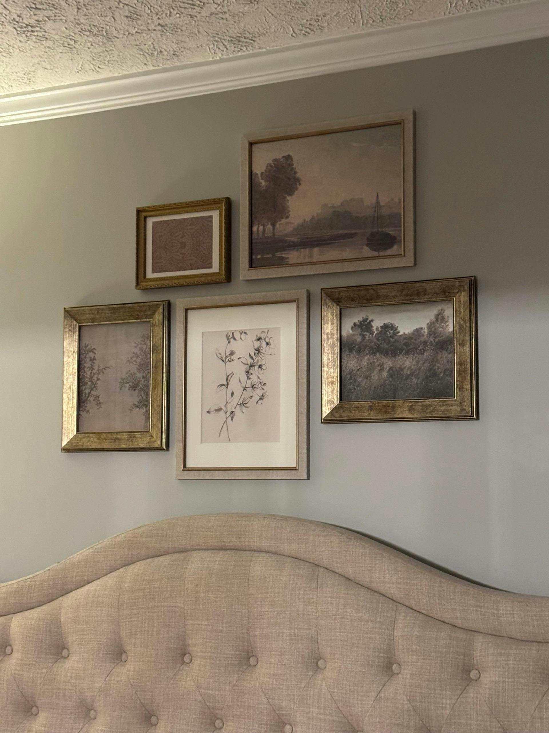 This elegant vintage botanical wall art set brings nature-inspired charm to your home. The coordinated gallery wall art set includes framed and unframed prints featuring delicate foliage sketches and scenic vintage landscape prints, blending beautifully as neutral wall decor in your living room wall art display, bedroom, or hallway. Thoughtfully arranged, this collection creates a cohesive vintage gallery wall that pairs timeless artistry with a soft, modern palette.